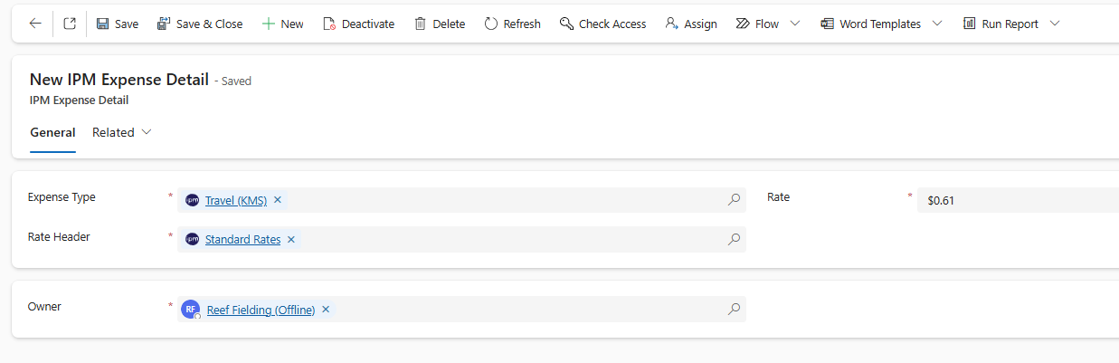 - In the drop down menu of the new Rate Table form, click IPM Expense Details
