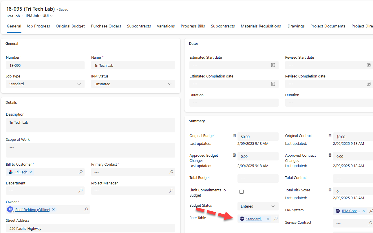 - The selected Job will now appear in the Rate Table list of IPM Jobs